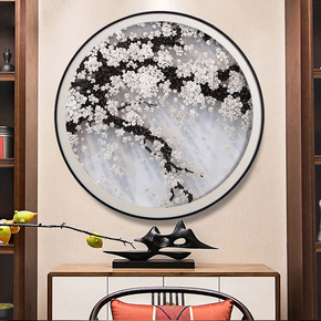 轻奢抽象壁画正方形玄关装饰画新中式样板间房客餐厅卧...