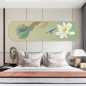 八边形中式荷花床头挂画沙发背景墙 挂画酒店样板间壁...