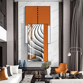 北欧轻奢入户玄关装饰画现代简约色块抽象大尺寸落地竖...