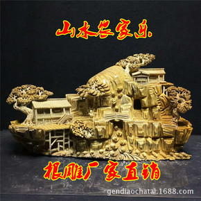 高山流水金丝楠木阴沉木乌木红木木雕根雕摆件工艺品家...