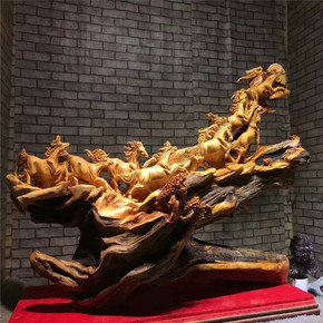 崖柏龙马精神摆件 家居开业客厅摆件 八骏雄风崖柏根...