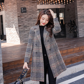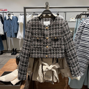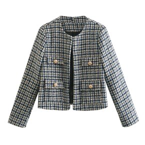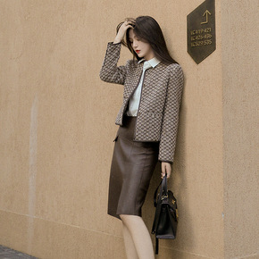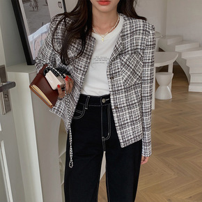 2021秋装新款法式气质百搭粗花呢格子长袖外套女名...