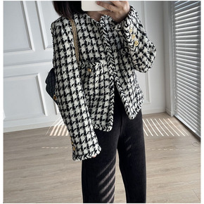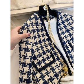 千鸟格小香风外套秋冬韩版2022新款名媛御姐气质加...