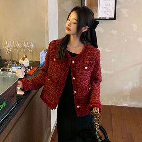 女小香风编织早春早春气质上衣感粗花呢复古撞色气质上...