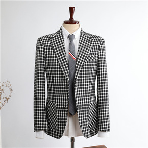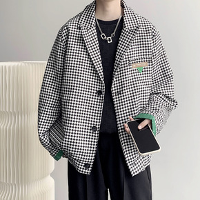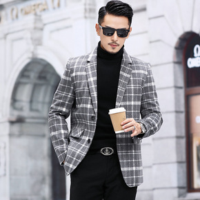 羊毛呢西服男士外套韩版潮流秋季英伦复古休闲格子西装...