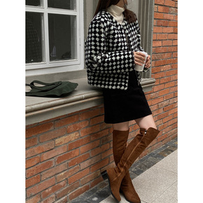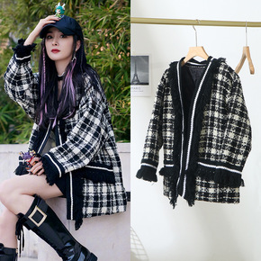 [现货]杨幂iu李知恩同款千鸟格小香风时尚宽松羊毛...