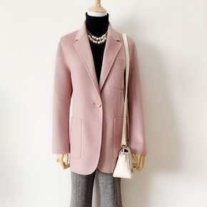 双面羊毛大衣女短款2021秋冬新款流行小个子西装领...