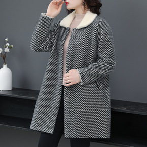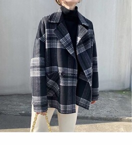 毛呢外套女短款韩版宽松条纹秋冬季新款冬季外套女大衣...