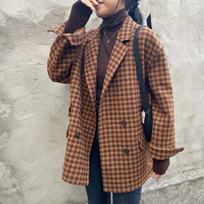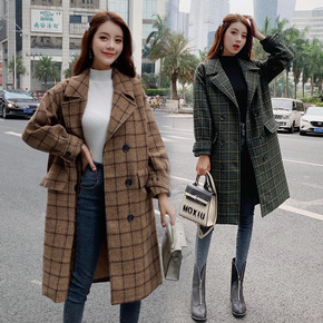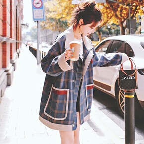 2021新爆款女装格子中长款外套宽松复古小个子百搭...