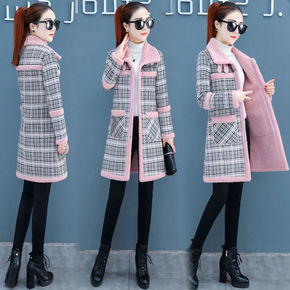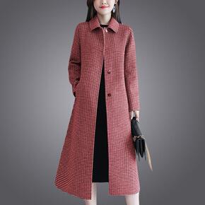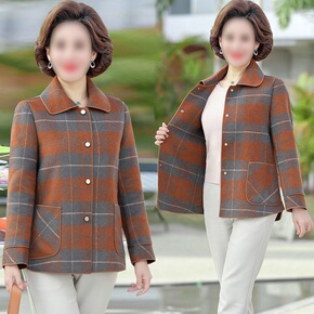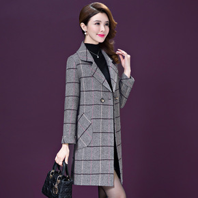 羊毛呢大衣女秋冬新款中年妈妈中长款修身格子毛呢外高...