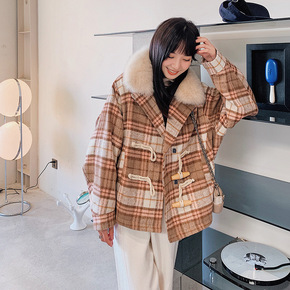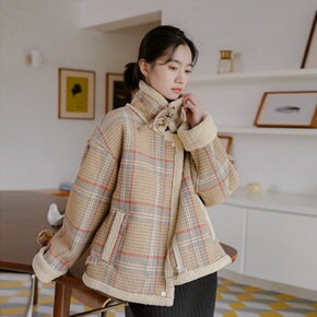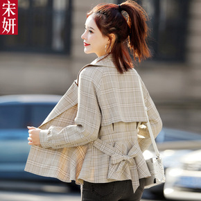经典时尚格纹短款大衣女新款现货秒发WT20294...
