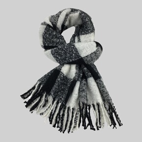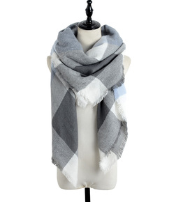 秋冬新款欧美女士格子方巾围巾 灰白柔软格子围巾披肩...