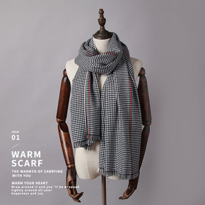 秋冬季欧美黑白格子新款围巾女棋盘格围脖男女学生保暖...