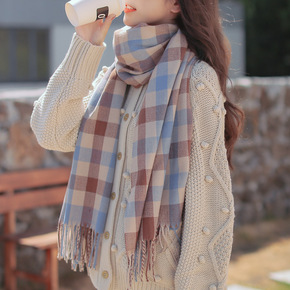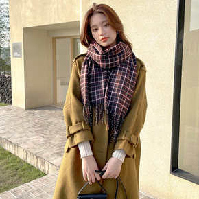 东大门小格子围巾女秋冬新款韩版流苏仿羊绒保暖披肩百...