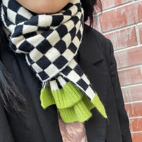 网红棋盘格格子围巾女包芯纱秋冬学生百搭保暖针织围脖...
