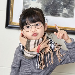 2021秋冬儿童仿羊绒格子围巾长款宝宝加厚保暖男女...