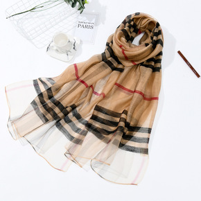 格子围巾真丝羊毛混纺丝巾秋冬新款丝毛桑蚕丝巴巴格长...