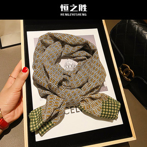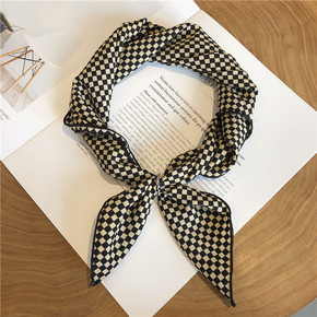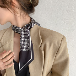 网红款千鸟格丝巾发带女小长条秋季脖子搭配衬衣的小丝...