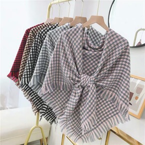 内蒙古厂家直供纯羊毛英伦格子女士围巾千鸟格披肩秋冬...