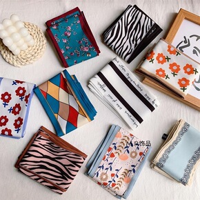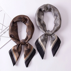 韩版千鸟格印花仿真丝小方巾时尚装饰丝巾职业领巾厂家...