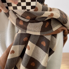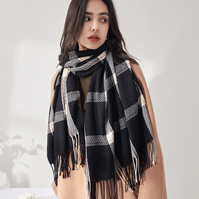 新款日韩复古仿羊绒围巾女冬季保暖流苏格子春秋百搭厚...
