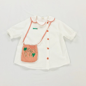 日系童趣元气少女娃娃领泡泡袖衬衫配小花人刺绣格子小...