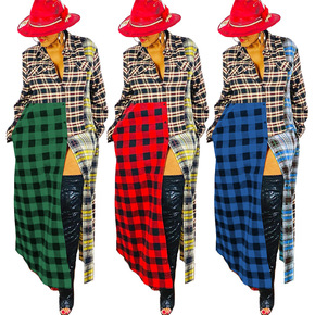 6031 跨境亚马逊多色混搭格子印花连衣裙...