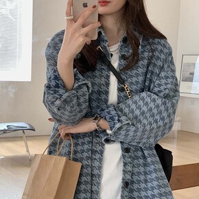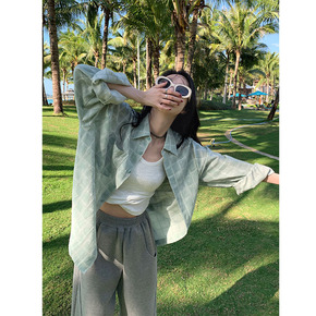 港味少女 复古格子衫 叠搭外穿防晒衣韩系宽松单排扣...