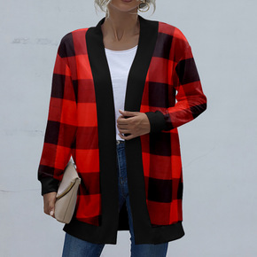 跨境2021一件代发秋装欧美休闲千鸟格女款大码针织...