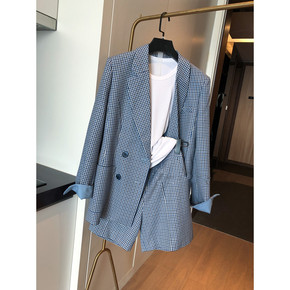 衣录预售格纹西装外套甜辣风女+西装短裤子女港风女 ...