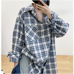 MJPF/复古bf风格子衬衫女秋季2021新款韩版...