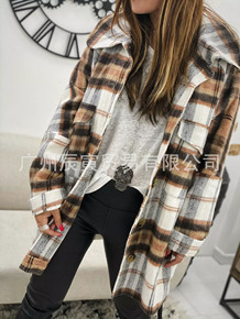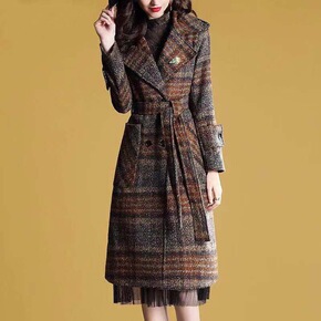 格纹大衣女格子大衣女中长款流行2021秋冬新毛呢外...