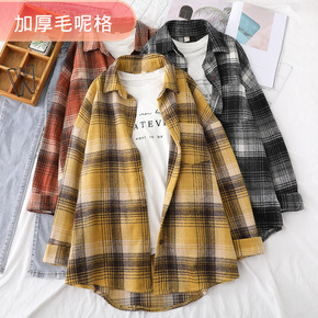 绒面磨毛格子衬衫女秋冬款加厚毛呢复古衬衣外套百搭格...