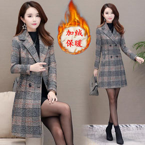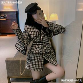 实拍英伦风秋冬季新款千鸟格毛呢外套女中长款2021...