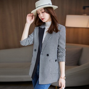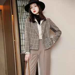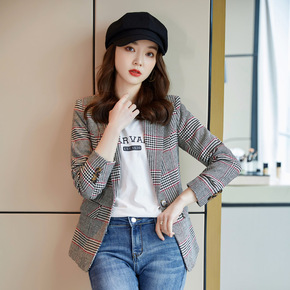 小西装外套女2021年秋季女装新款流行早春秋格子休...
