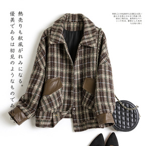 休闲港风复古格子短款外套2021年新款春秋装潮流宽...