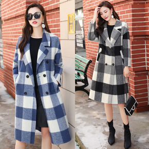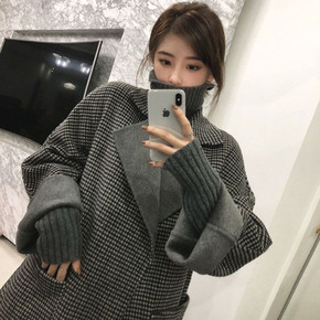 反季千鸟格学生韩版外套女中长款毛呢大衣矮个子秋冬宽...