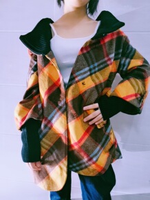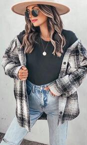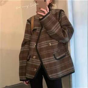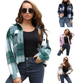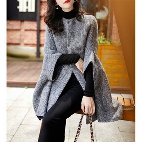 2021春秋新款外贸女装格子披肩呢子大衣韩版大码拼...