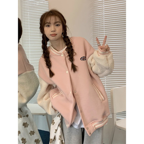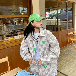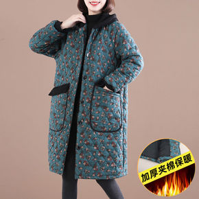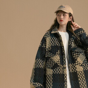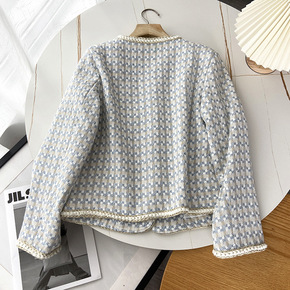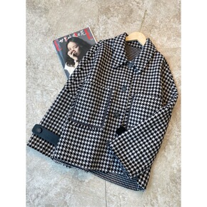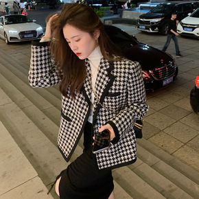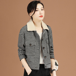 千鸟格宽松休闲夹棉加厚短外套 女2022冬装新款法...
