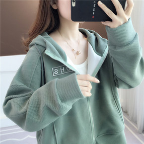华夫格连帽开衫卫衣早秋时尚防晒外套百搭休闲长袖宽松...