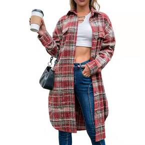 S390225 欧美女装 中长款休闲时尚欧美经典格...