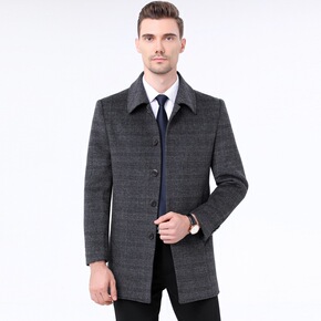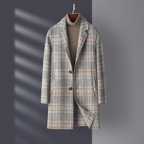 风衣格子呢料男外套中长款秋加棉冬装呢大衣潮装--...