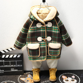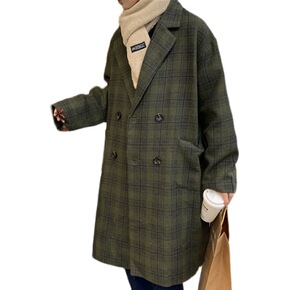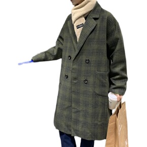 冬装大衣港风男生宽松格子呢料外套...