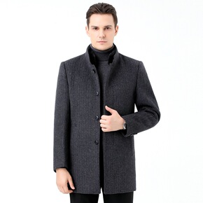 秋冬季爆款加厚毛呢大衣男中长款过膝外套潮流呢子风衣...