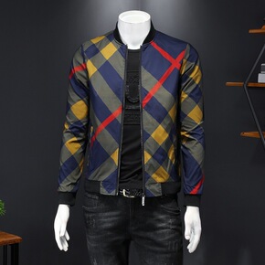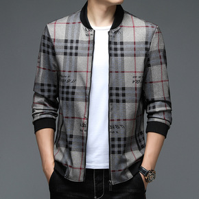 欧洲站2022春季新款男士格纹薄款夹克外套大码男装...