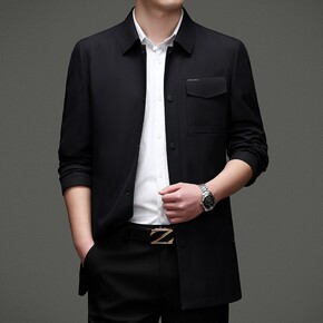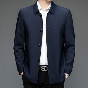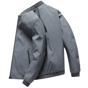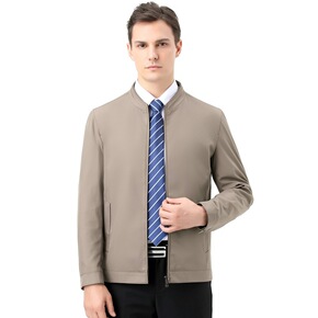 2022春季新款夹克衫男商务休闲纯色格纹内里中老年...