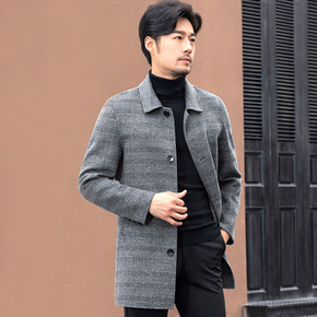 欧洲站冬季商务休闲外套中长款双面羊毛呢大衣男...