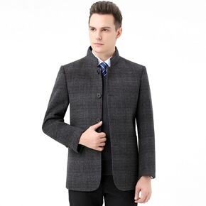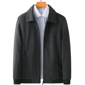 2021秋冬季羊绒茄克男品牌中老年双面尼羊毛大衣商...