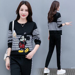 秋季女装运动连帽格子假两件卫衣卫裤套装 89090...