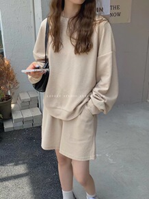 华夫格奶酪 宽松大版卫衣套装廓形套头卫衣+短裤两件...